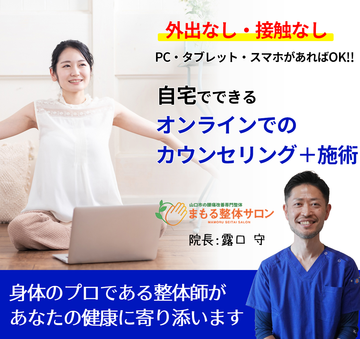 そこで当院は、対面する事無く・また接触する事無く、身体の不調を改善できるようにzoomを使用したオンラインでの施術を開始致しました。